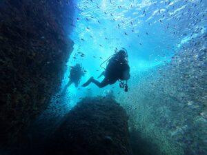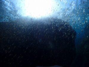 洞窟の入り口には魚の群れがすごかった!